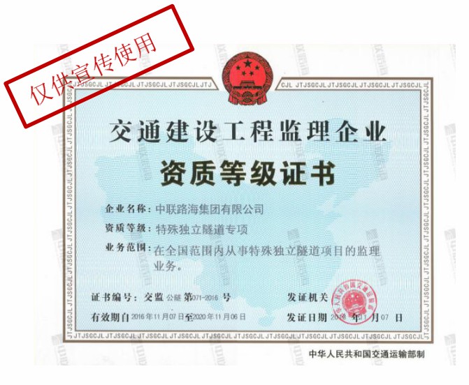 交通建设工程监理企业-特殊独立隧道专项资质证书