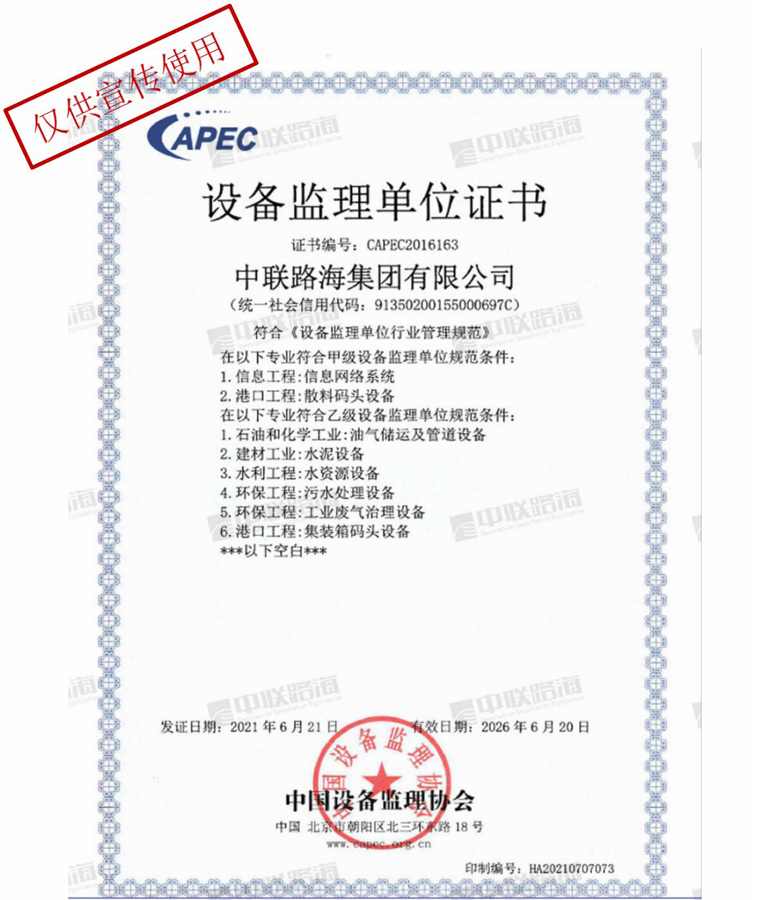 设备监理单位证书