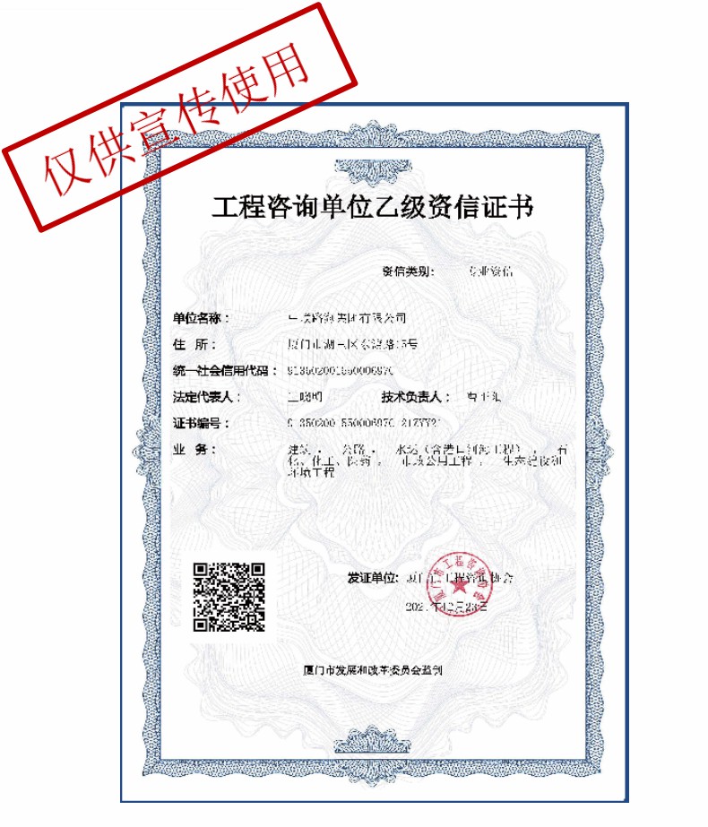 工程咨询单位乙级资信证书
