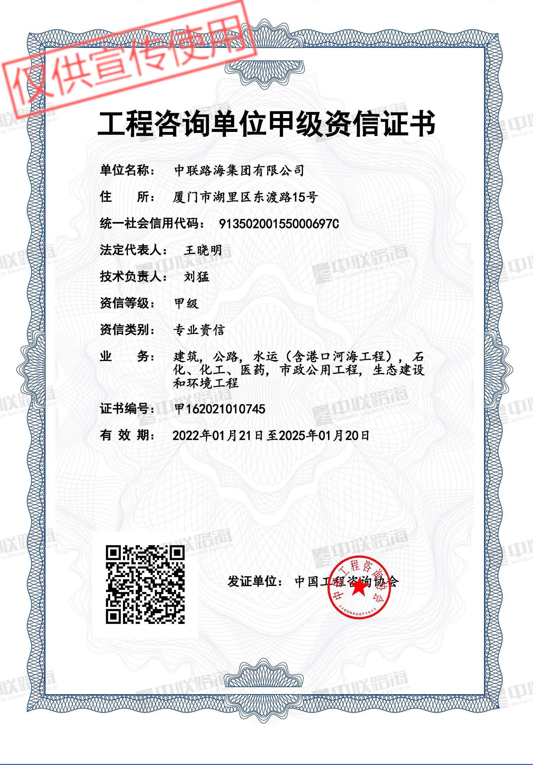 工程咨询单位甲级资信证书