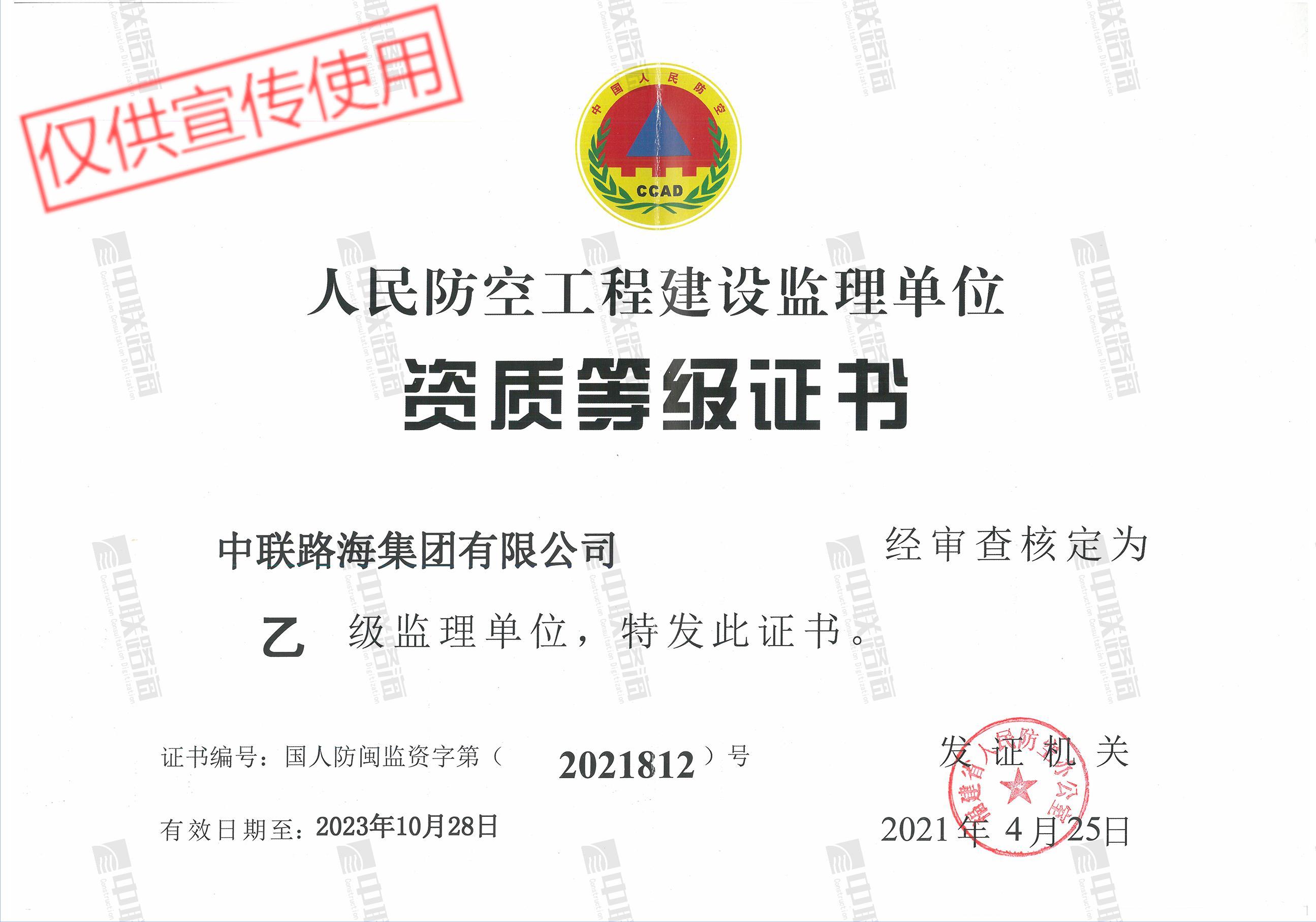 人民防空工程建设监理单位-乙级资质证书