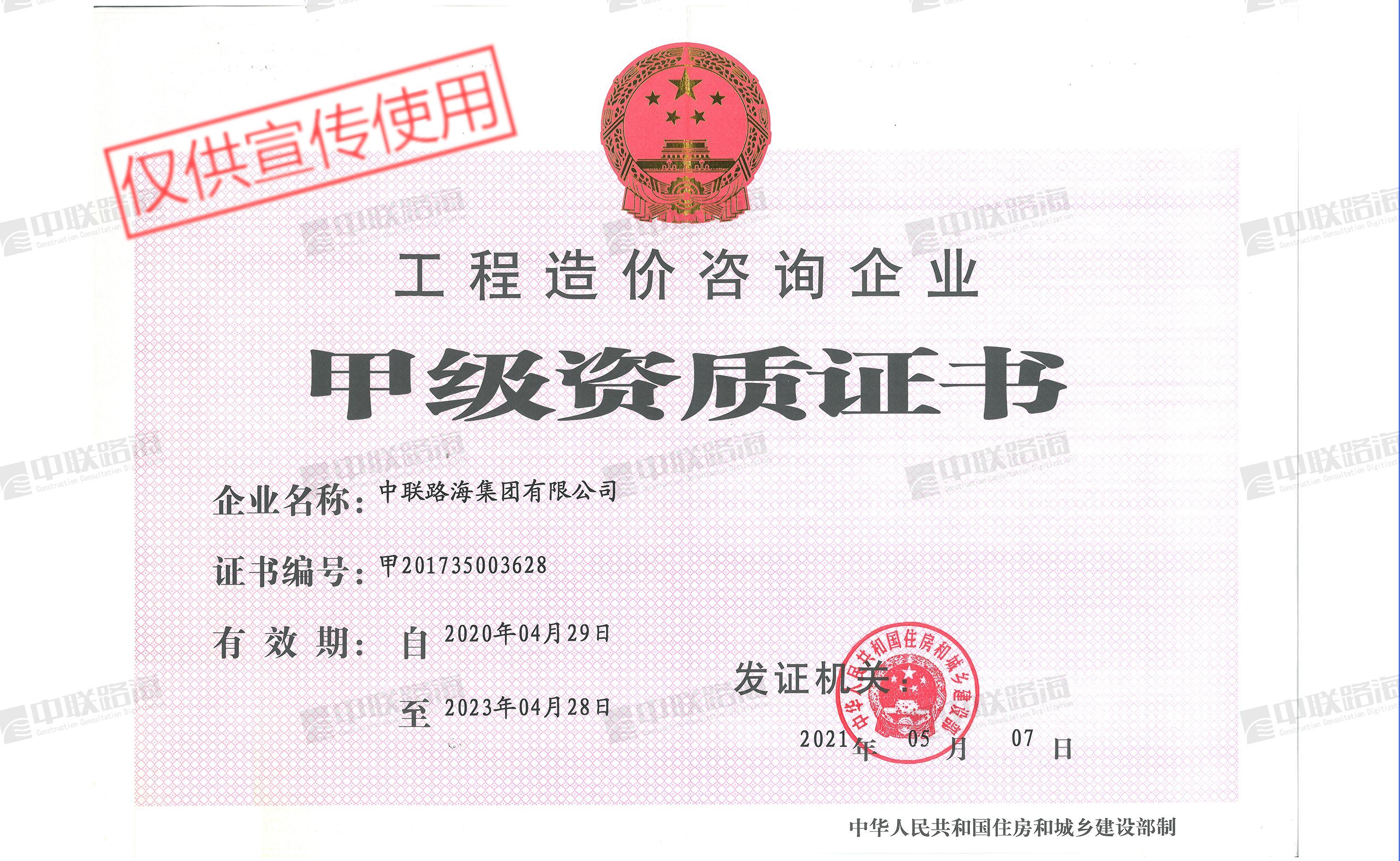 工程造价咨询企业-甲级资质证书