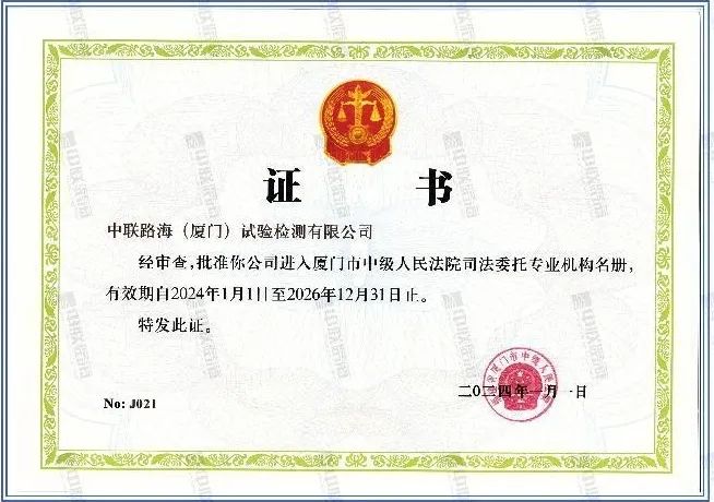 近期,,,尊龙时凯集团有限公司及旗下子公司尊龙时凯(厦门)试验检测有限公司经厦门市中级人民法院审查,,,分别获批进入厦门市中级人民法院建设工程造价鉴定专业、、、、建筑工程质量检测鉴定专业司法委托专业机构名册。。